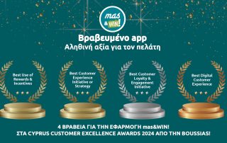Τέσσερις σημαντικές διακρίσεις για την εφαρμογή “mas&WIN!” του Ομίλου Υπεραγορών Mas στα Cyprus Customer Excellence Awards 2024!