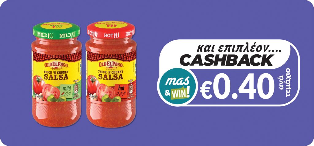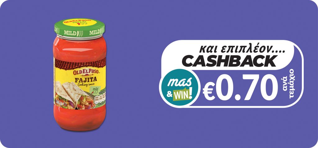 Επωφελείστε επιστροφή χρημάτων €0.70 με κάθε αγορά του προϊόντος OLD EL PASO Σάλτσα fajitas mild 340g