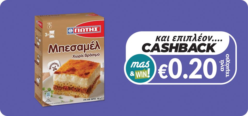 Επωφελείστε επιστροφή χρημάτων €0.20 με κάθε αγορά του προϊόντος ΓΙΩΤΗΣ Μπεσαμέλ 3x54g