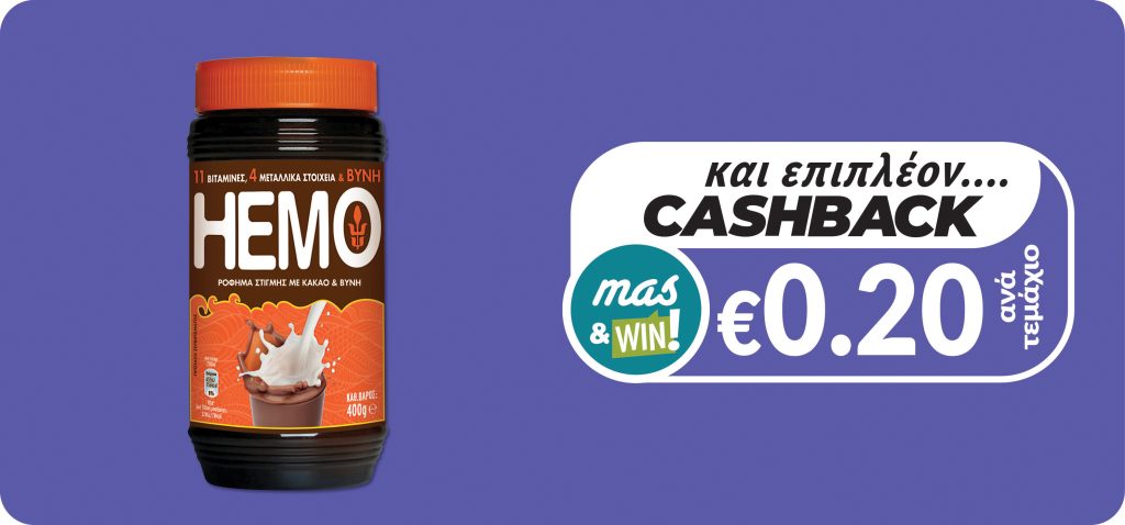 Επωφελείστε επιστροφή χρημάτων €0.20 με κάθε αγορά του προϊόντος HEMO 400g
