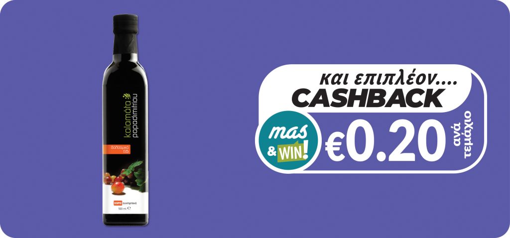 Επωφελείστε επιστροφή χρημάτων €0.20 με κάθε αγορά του προϊόντος KALAMATA PAPADIMITRIOU Βαλσάμικο ξύδι 500ml