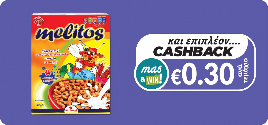 Επωφελείστε επιστροφή χρημάτων €0.30 με κάθε αγορά του προϊόντος MR. GRAND Δημητριακά με μέλι 375g