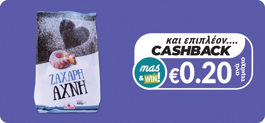 Επωφελείστε επιστροφή χρημάτων €0.20 με κάθε αγορά του προϊόντος MR. GRAND Ζάχαρη άχνη 400g