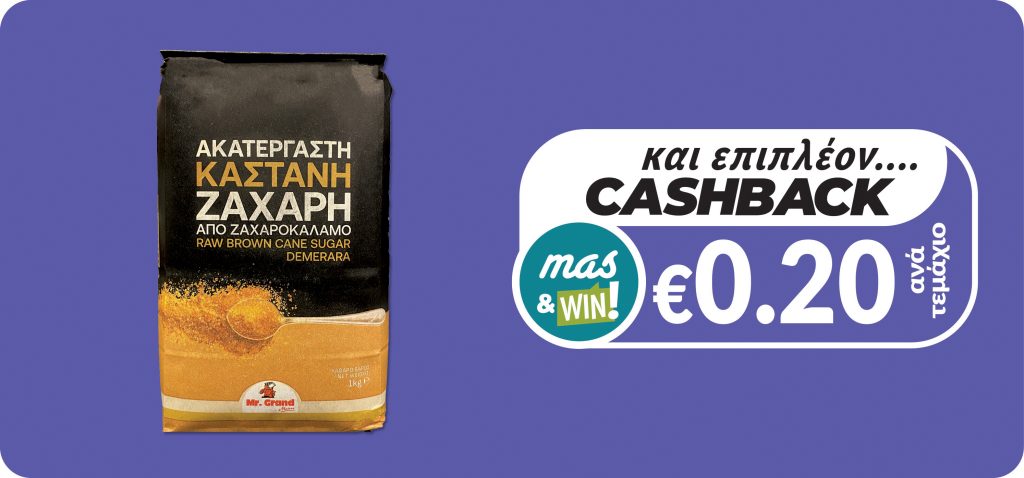 Επωφελείστε επιστροφή χρημάτων €0.20 με κάθε αγορά του προϊόντος MR. GRAND Καστανή ζάχαρη 1kg