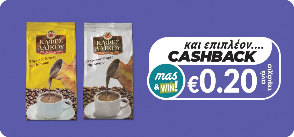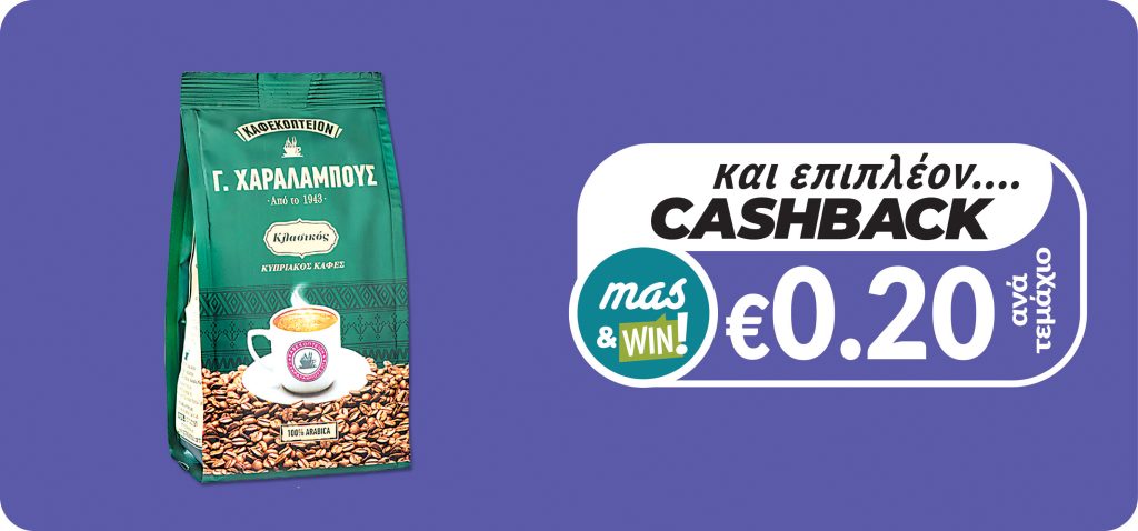 Επωφελείστε επιστροφή χρημάτων €0.20 με κάθε αγορά του προϊόντος Γ. ΧΑΡΑΛΑΜΠΟΥΣ Κυπριακός καφές 200g