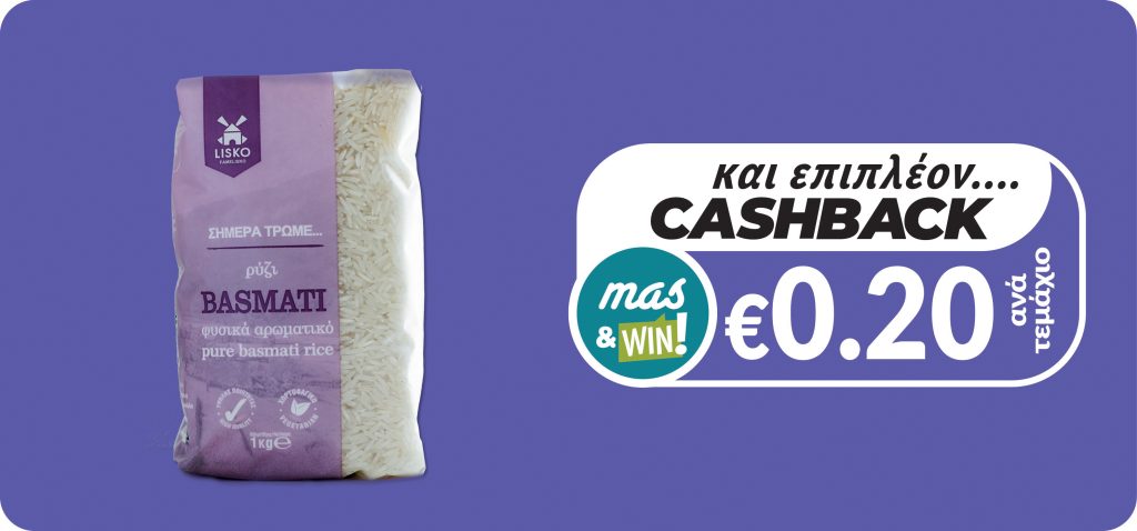 Επωφελείστε επιστροφή χρημάτων €0.20 με κάθε αγορά του προϊόντος LISKO Ρύζι μπασμάτι 1kg