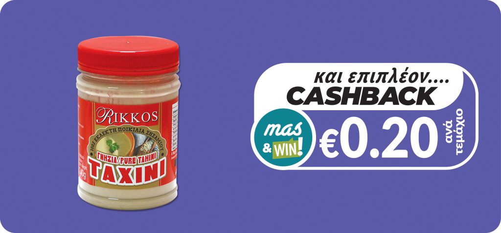 Επωφελείστε επιστροφή χρημάτων €0.20 με κάθε αγορά του προϊόντος ΡΙΚΚΟΣ Ταχίνι 240g