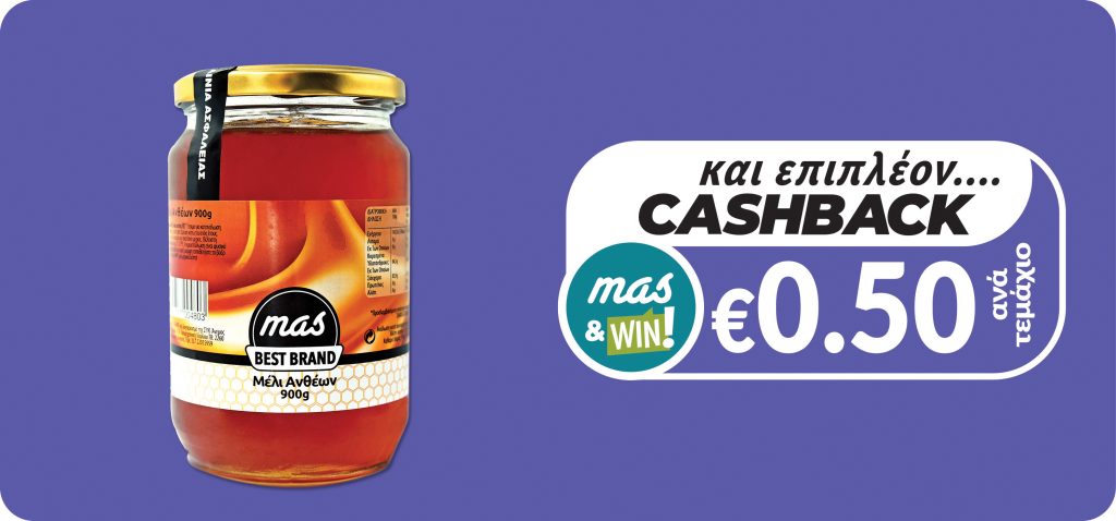 Επωφελείστε επιστροφή χρημάτων €0.50 με κάθε αγορά του προϊόντος MAS BEST BRAND Μέλι ανθέων 900g