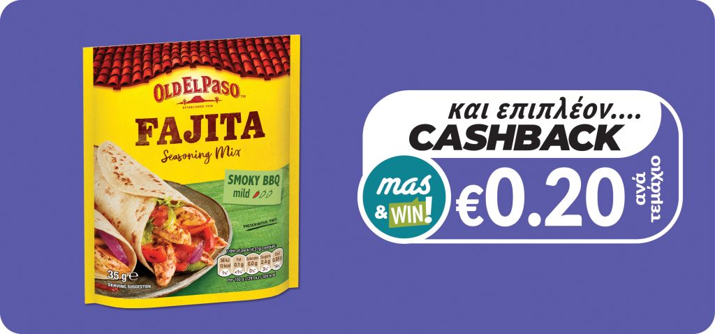 Επωφελείστε επιστροφή χρημάτων €0.20 με κάθε αγορά του προϊόντος OLD EL PASO Μίγμα μπαχαρικών για fajitas 35g