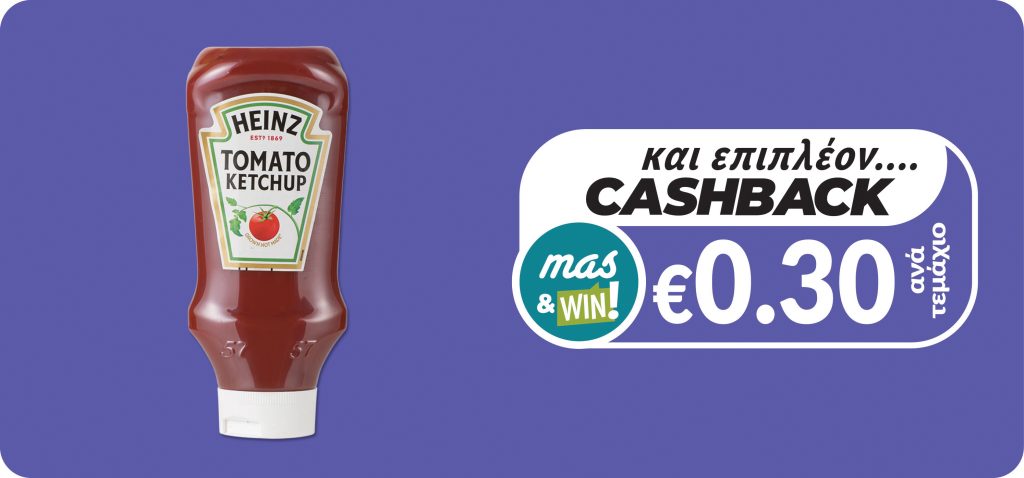 Επωφελείστε επιστροφή χρημάτων €0.30 με κάθε αγορά του προϊόντος HEINZ Κέτσαπ 700g