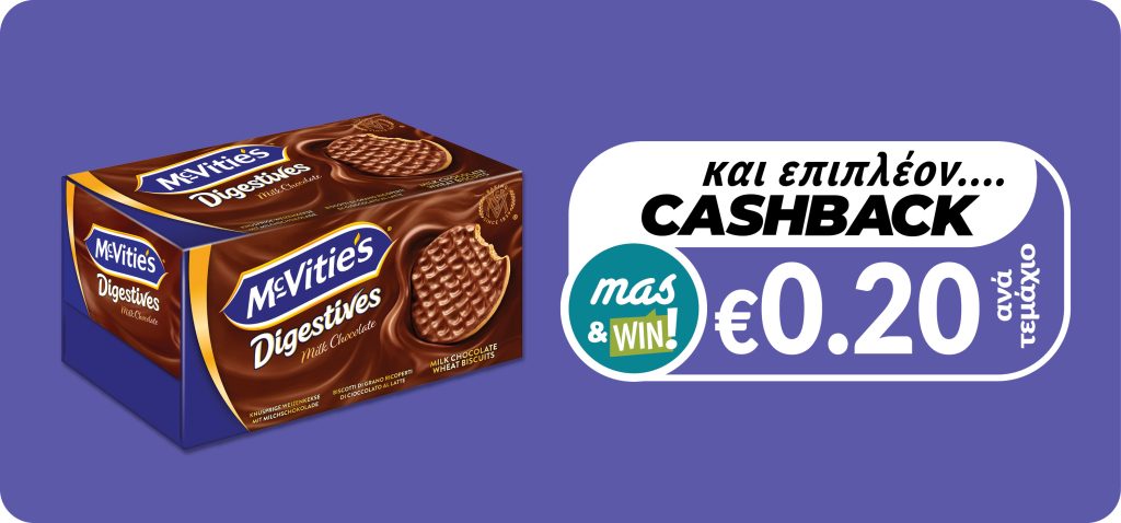 Επωφελείστε επιστροφή χρημάτων €0.20 με κάθε αγορά του προϊόντος McVITIES Digestive με σοκολάτα γάλακτος 200g