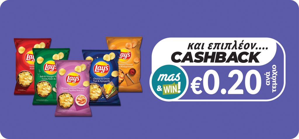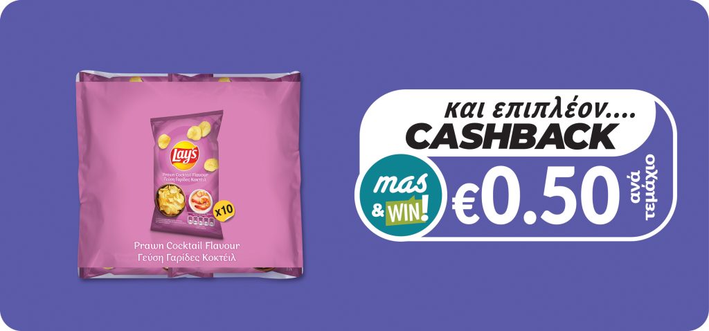 Επωφελείστε επιστροφή χρημάτων €0.50 με κάθε αγορά του προϊόντος LAY’S Γαρίδες cocktail 10x42g