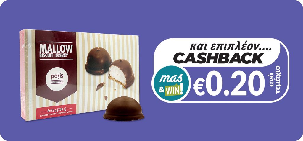 Επωφελείστε επιστροφή χρημάτων €0.20 με κάθε αγορά του προϊόντος PARIS Biscuit mallow 8x35g