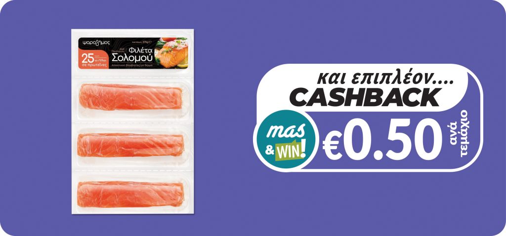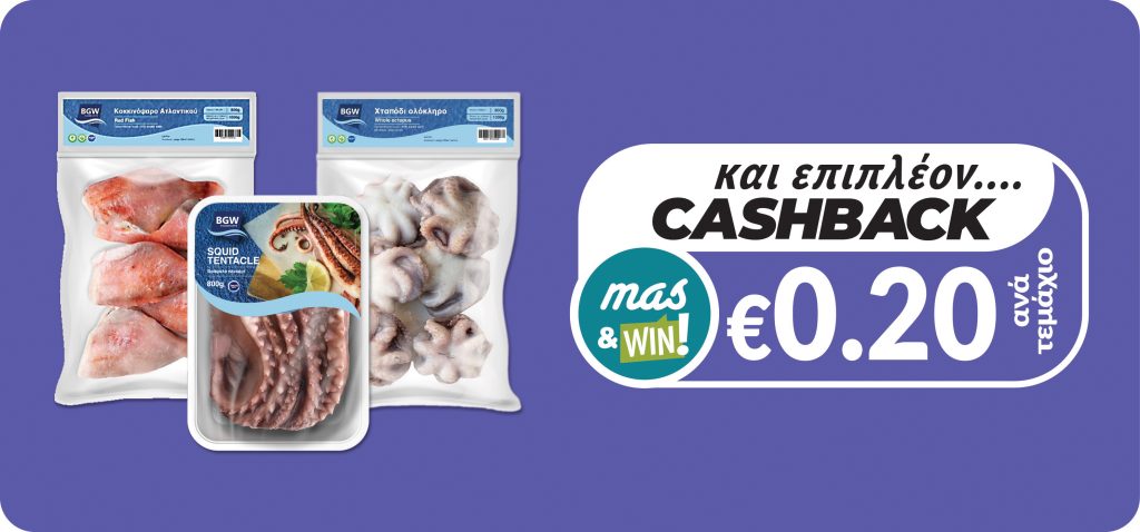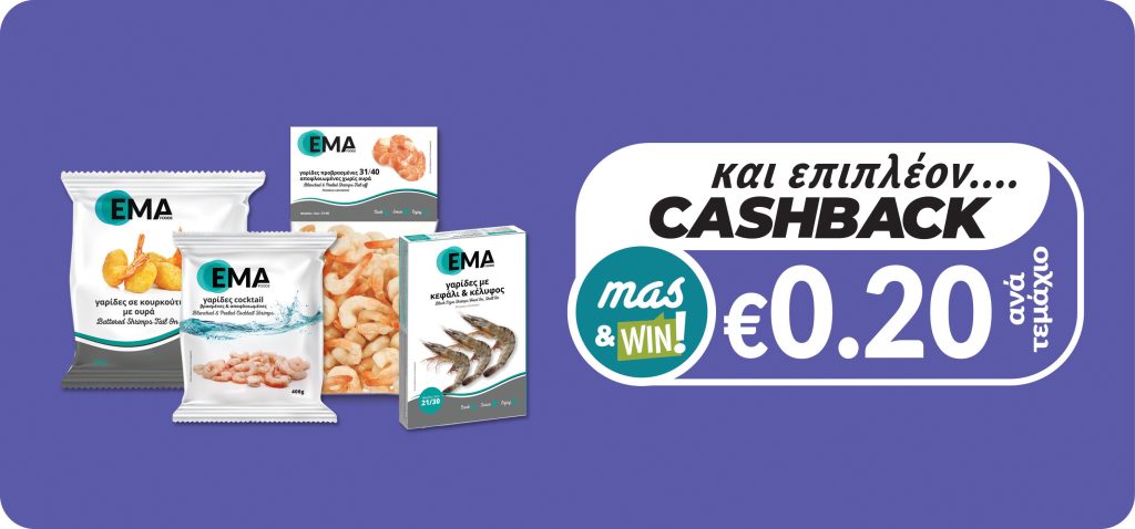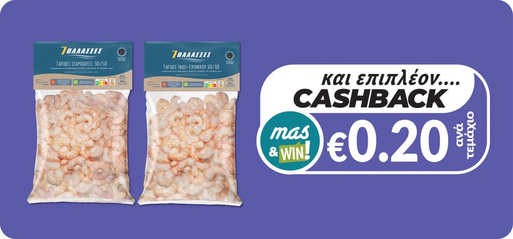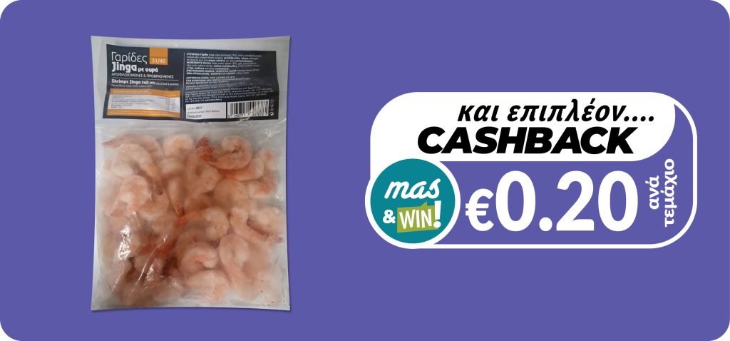Get benefited from a refund €0.20 with every purchase of ΤΑ ΘΑΛΑΣΣΙΝΑ ΜΑΣ Shrimps with tail peeled & pre-cooked 31/40 425g