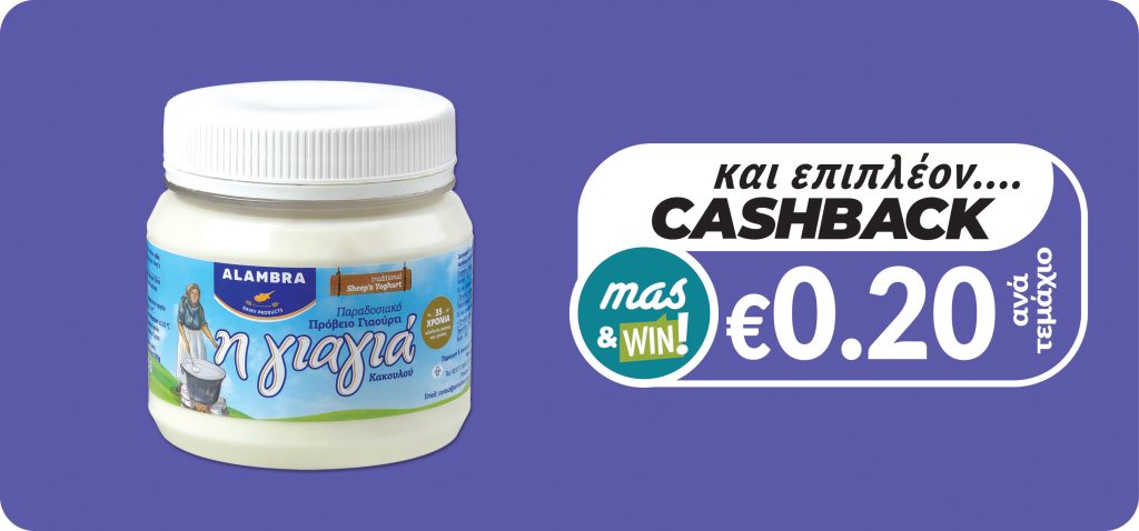 Get benefited from a refund €0.20 with every purchase of ALAMBRA Yogurt η Γιαγιά 100% sheep traditional 400g