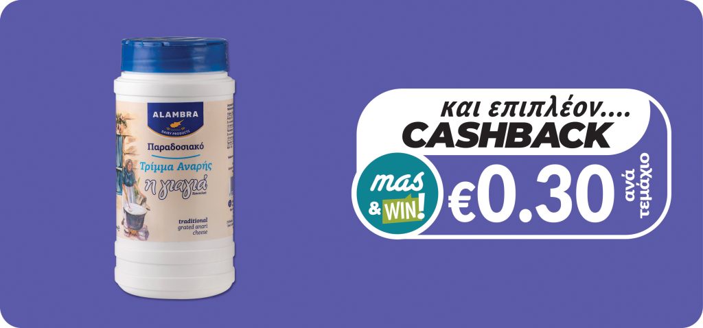 Get benefited from a refund €0.30 with every purchase of ALAMBRA Grated anari dry η Γιαγιά 200g