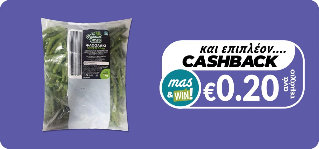 Get benefited from a refund €0.20 with every purchase of ΤΑ ΦΡΕΣΚΑ ΜΑΣ Green beans 1kg