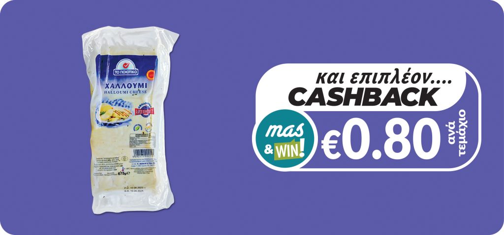 Get benefited from a refund €0.80 with every purchase of ΤΟ ΠΟΙΟΤΙΚΟ Haloumi cheese 675g