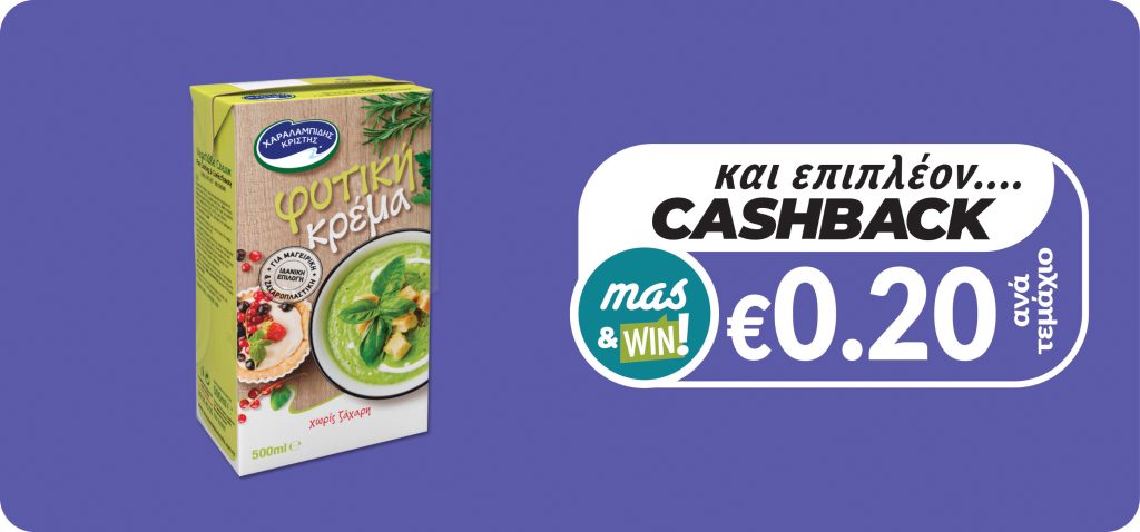 Get benefited from a refund €0.20 with every purchase of CHARALAMBIDES CHRISTIS Vegetable cream 500ml
