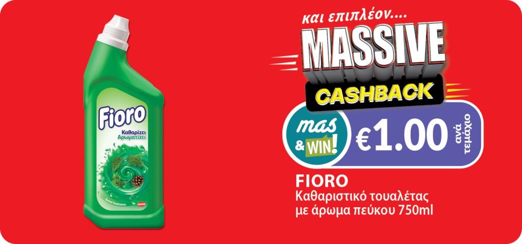 Get benefited from a refund €1.00 with every purchase of FIORO Liquid toilet cleaner green fresh 750ml