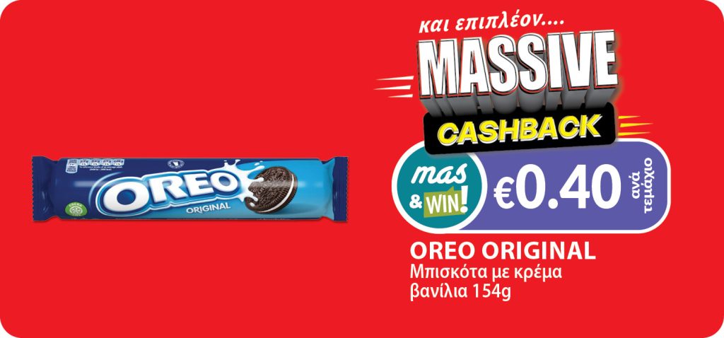 Get benefited from a refund €0.40 with every purchase of OREO Vanilla cookies 154g.
