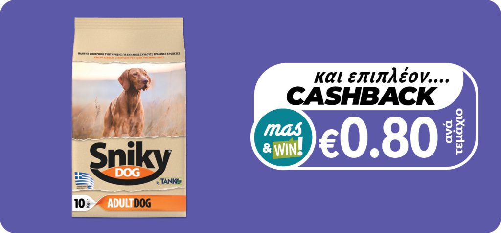 Get benefited from a refund €0.80 with every purchase of SNIKY DOG Dog food 10Kg