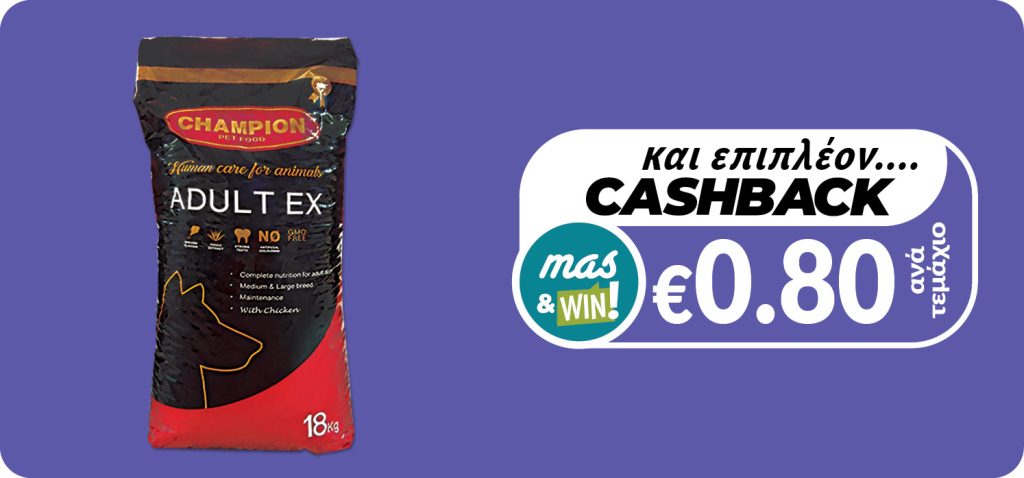 Get benefited from a refund €0.80 with every purchase of CHAMPION Adult ex dry dog food chicken 18kg